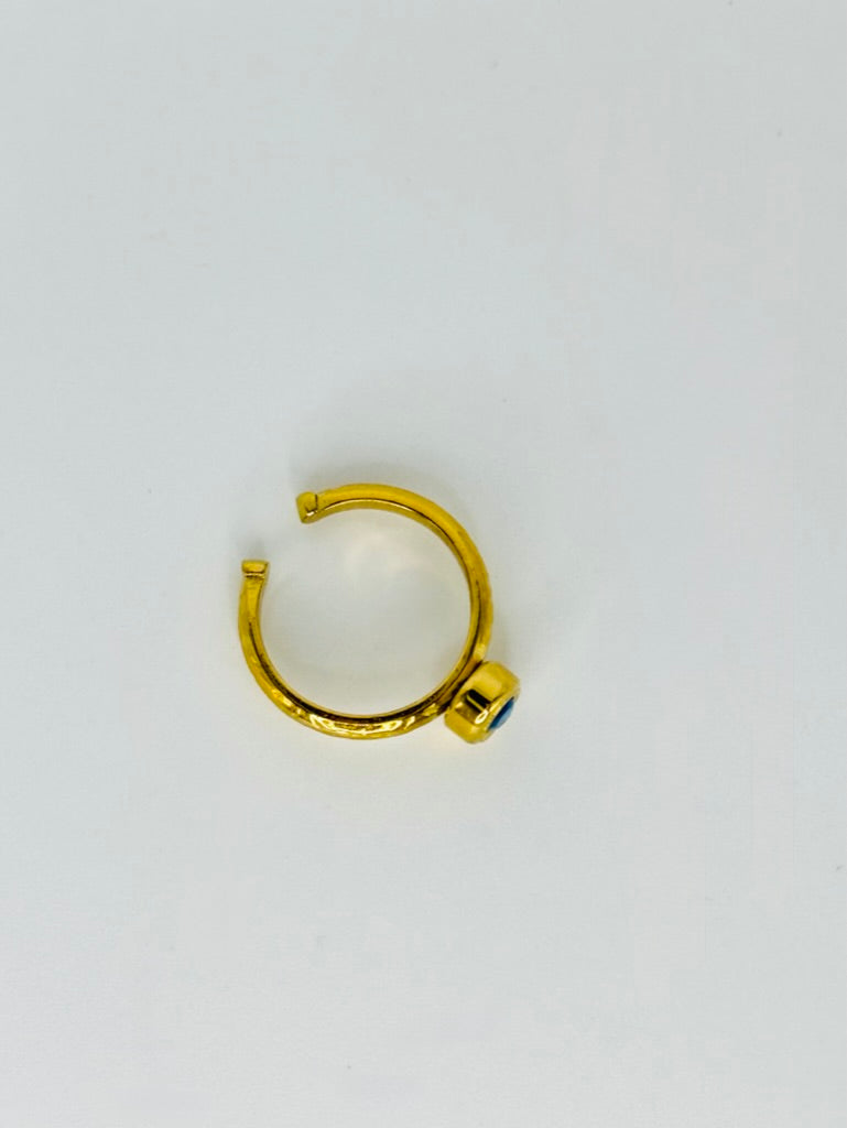Our Azzurro Ring is crafted from tarnish-free stainless steel with radiant 18K gold plating and an open titanium band for a comfortable, adjustable fit. Featuring a calming blue stone, it evokes serenity, clarity, and a quiet strength—like a deep breath beneath a wide-open sky.